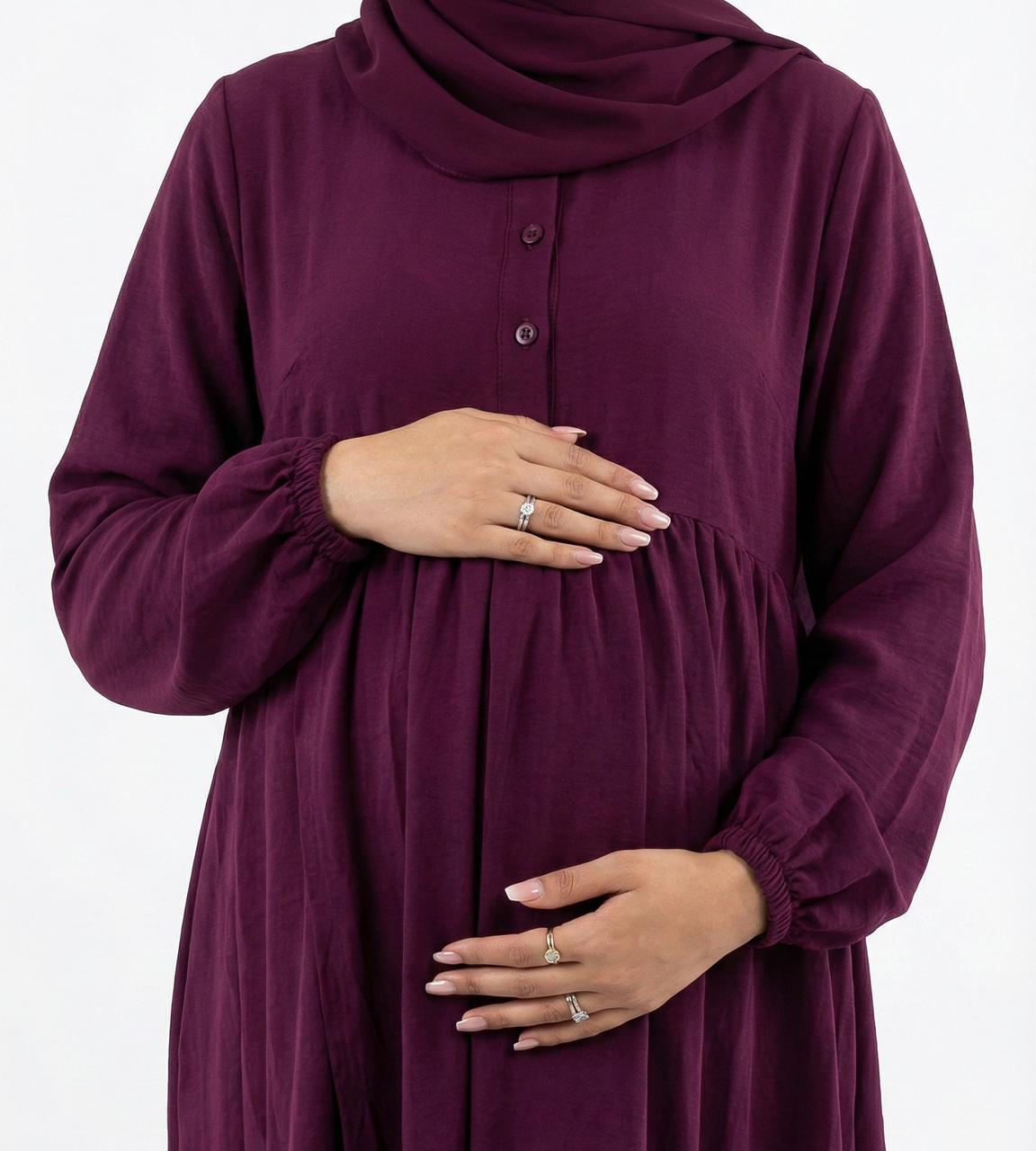 يسمح لكِ تصميم هذا الفستان العملي والفضفاض بإرتدائه في الحمل والشعور بالراحة والستر ،قماشه المصنوع من القطن الطبيعي المعالج يجعله خفيفا ومريحا وفي نفس الوقت لا يظهر الجسد .